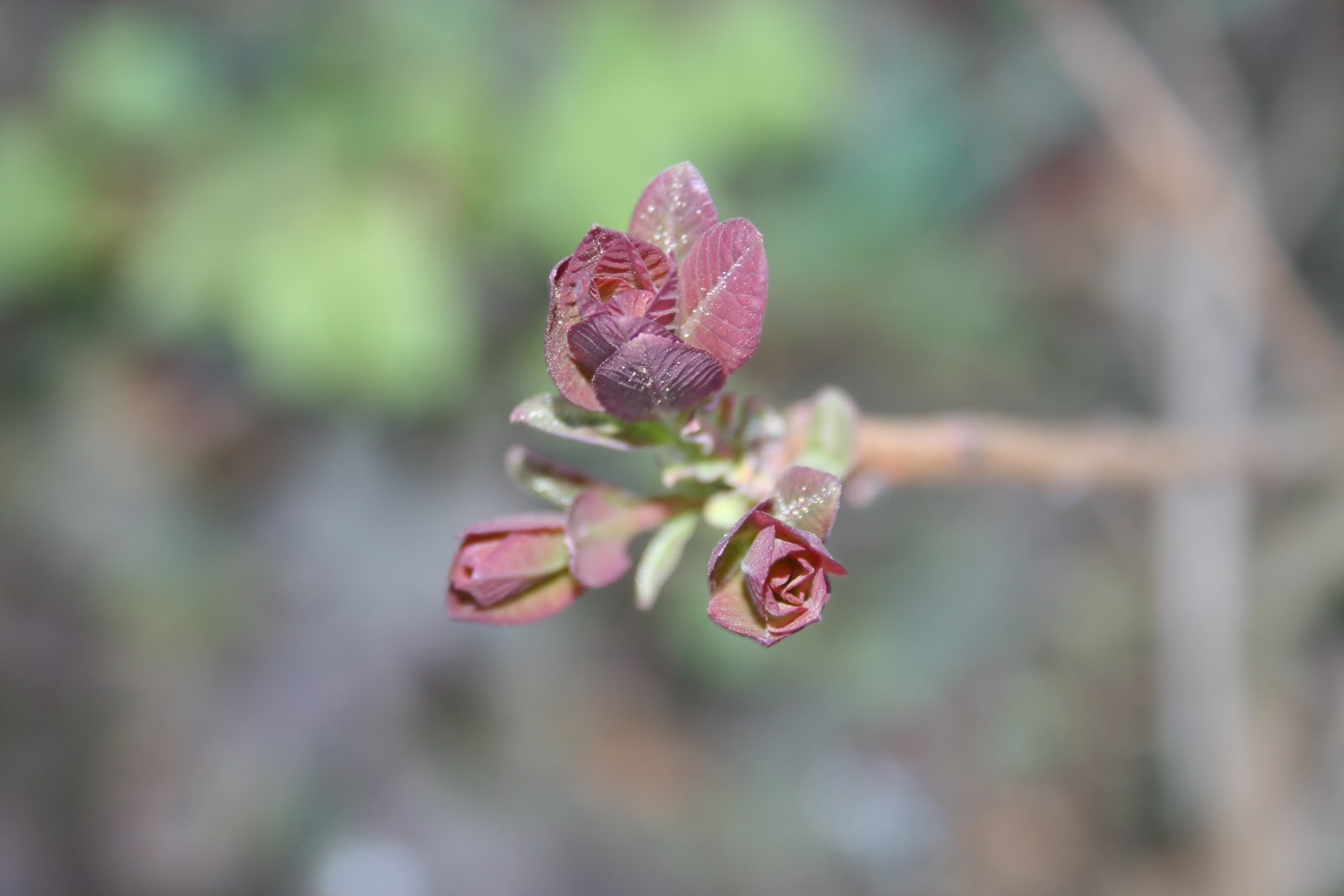 Pavasarį pūkenis nepuola sprogti vos atšilus orams. Jis iš lėto skleidžia savo raudonai violetinius lapus.