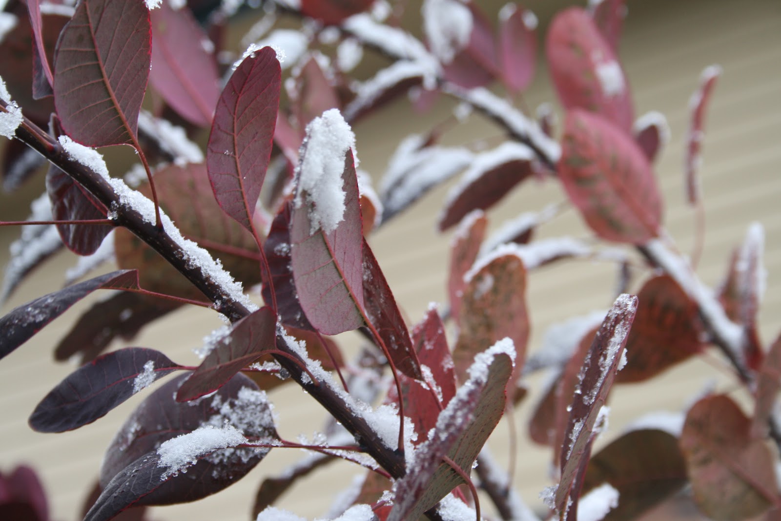 Savąjį – ‘Royal Purple’ – aš įsigijau visai neseniai. Jis mano sode baigia žiemoti trečiąją žiemą. Šios veislės lapai tamsiai raudoni, su violetiniu atspalviu. O rudenį jie labai gražiai nurausta. Savąjį pūkenį pirkau nediduką (apie 30-40 cm aukščio). Aš visada perku mažus augaliukus, kad augdami mano sode jie pamažu prisitaikytų prie esamų sąlygų. Aišku, norimo vaizdo reikia ilgiau laukti, bet taip aš galiu geriau pažinti augalą, išsiaiškinti jo poreikius. Pūkeniai per vasarą paauga ženkliai. Todėl dabar jo aukštis yra apie 2 m. Maksimalus augalo aukštis apie 3 m, o plotis 1,5-2 m.