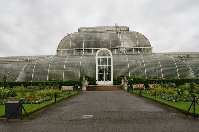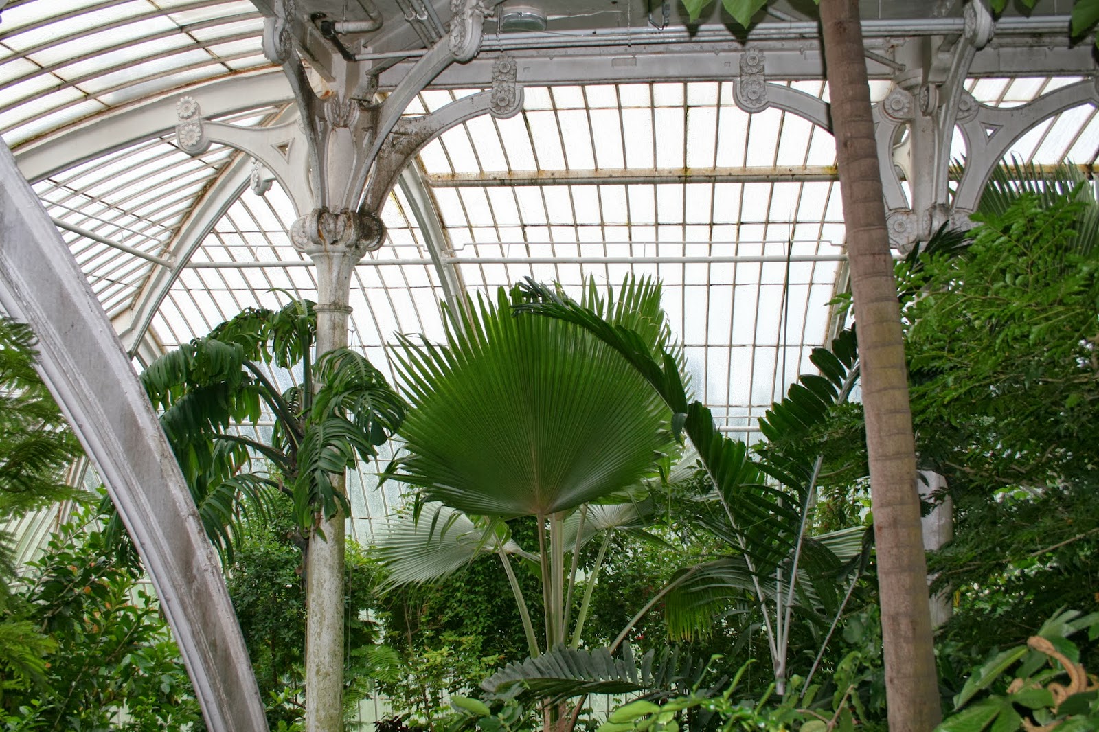 Mūsų pažintis su Kju prasidėjo nuo šio sodo ikonos – Palm House (Palmių namo). Šis pritrenkiantis statinys buvo pastatytas 1844 – 1848 m. Tai vienas žymiausių visame pasaulyje karalienės Viktorijos laikų pastatas iš stiklo ir metalo. Tuomet tai buvo itin novatoriškas projektas. Jis buvo projektuojamas konstrukcinius elementus nusižiūrint iš laivų statytojų. Jei atidžiau pažvelgtume į jį, pamatytume apversto laivo siluetą. Ir visas šitas inžinerinis stebuklas buvo statomas dėl to, kad ten netrukdomai galėtų vešėti išdidžios palmių karūnos. Dėl savo prabangaus eksterjero ir ne ką prastesnio interjero ši puiki oranžerija yra tapusi Kju sodų simboliu.
