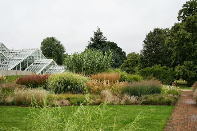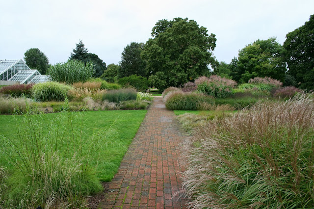 Keliaudami nuo oranžerijos į dešinįjį sodo kampą, aptikome Žolių ir Vandens sodus. Grass Garden (Žolių sodas) buvo sukurtas 1982 m., o apskritai Kju sode žolės pradėtos eksponuoti dar XIX a. pr. Nors aš dekoratyvinių žolių kompozicijas buvau nusiteikusi pamatyti tik Vislio sode, išvydusi jas čia, likau tikrai sužavėta. Sąlyginai nedideliame plote siūbavo miskantų, lendrūnų, įvairiausių smilgų salos. Labai gražu !