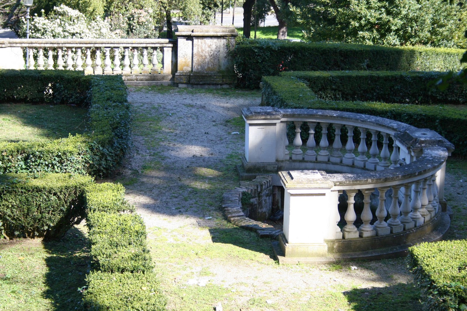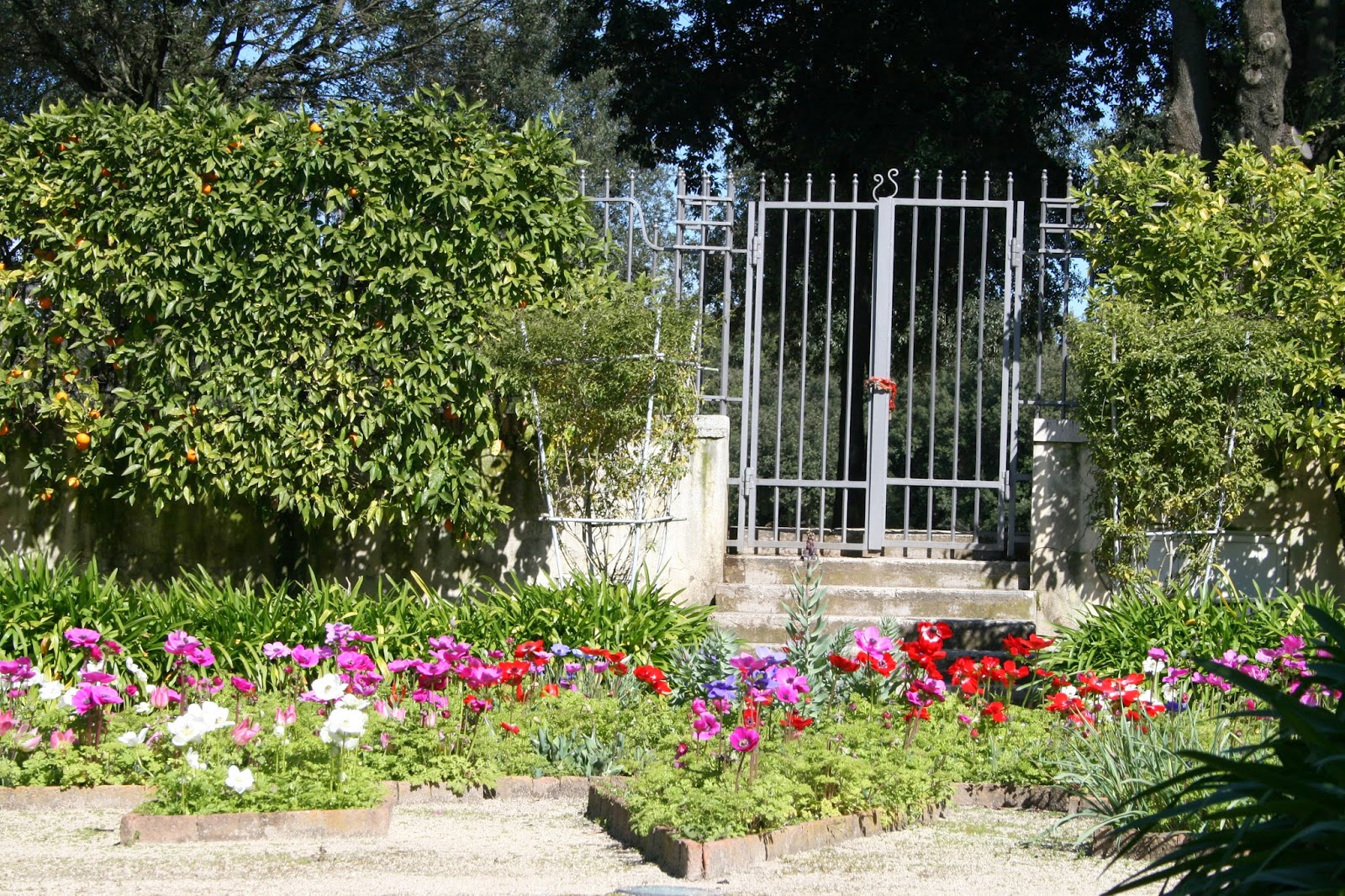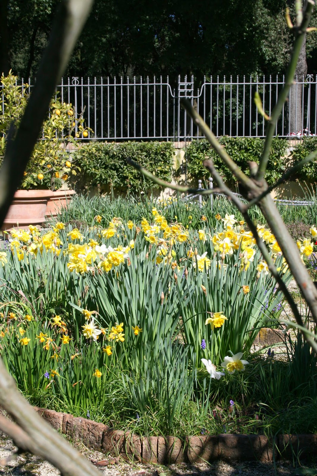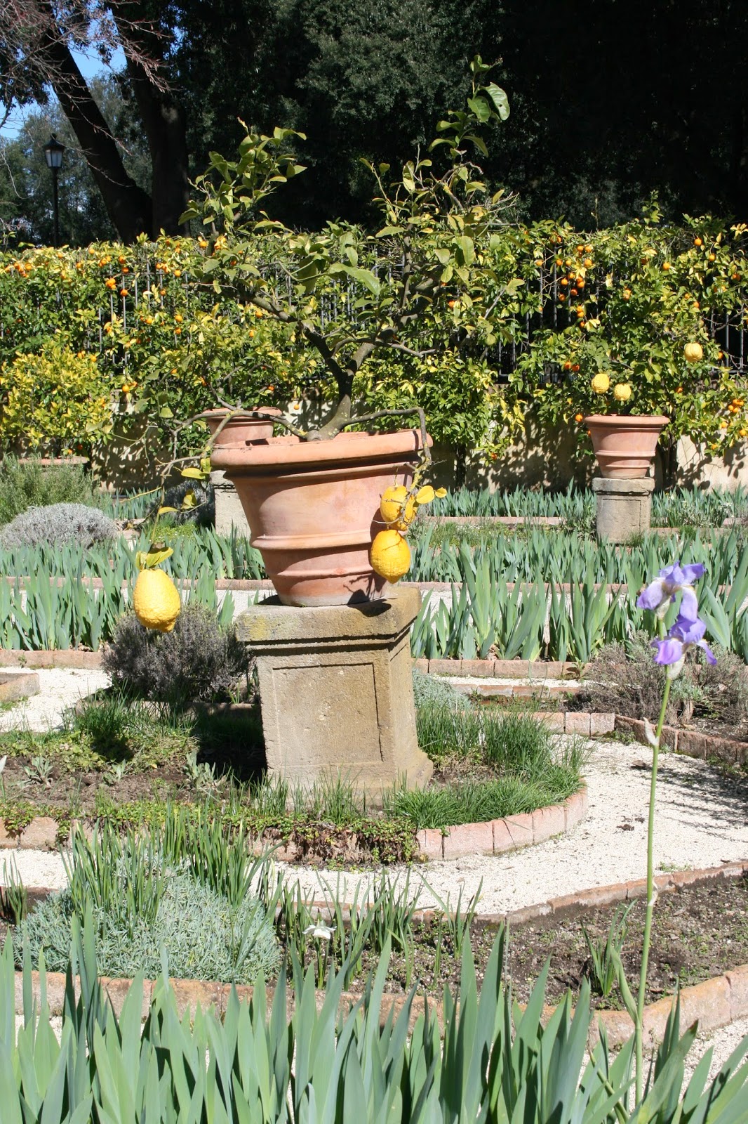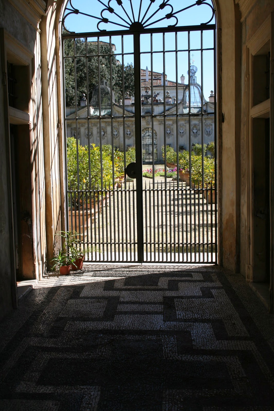 Iš abiejų pusių vilą gaubia nedideli, tvoromis aptverti ir šiuo metu dar lankytojų nepriimantys sodeliai. Teko fotoaparato objektyvą kaišioti į tvoros tarpus ir bandyti pamatyti vazonuose augančius citrinmedžius ir visu grožiu žydinčias pavasarines gėles.