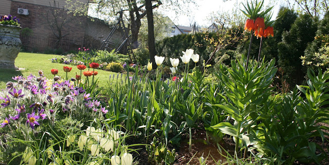 Savo sodininkavimo sąsiuvinyje kiekvienais metais pasižymiu, kas kada žydėjo. Jau statiską galima suvedinėti :). Šiemet viskas vėluoja apie dvi savaites. Peržiūrėjusi nuotraukas matau, jog šiuo metu žydi tai, kas 2010 m. balandžio pirmąsias savaites net pavėsiuke skleidė lapus.